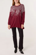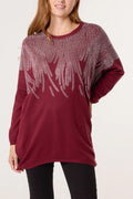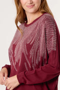 Made In Italy | Diamante Spikes Round Neck Jumper | Berry