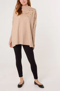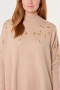 Made In Italy | Embellished Leaves High Neck & Batwing Jumper | Beige